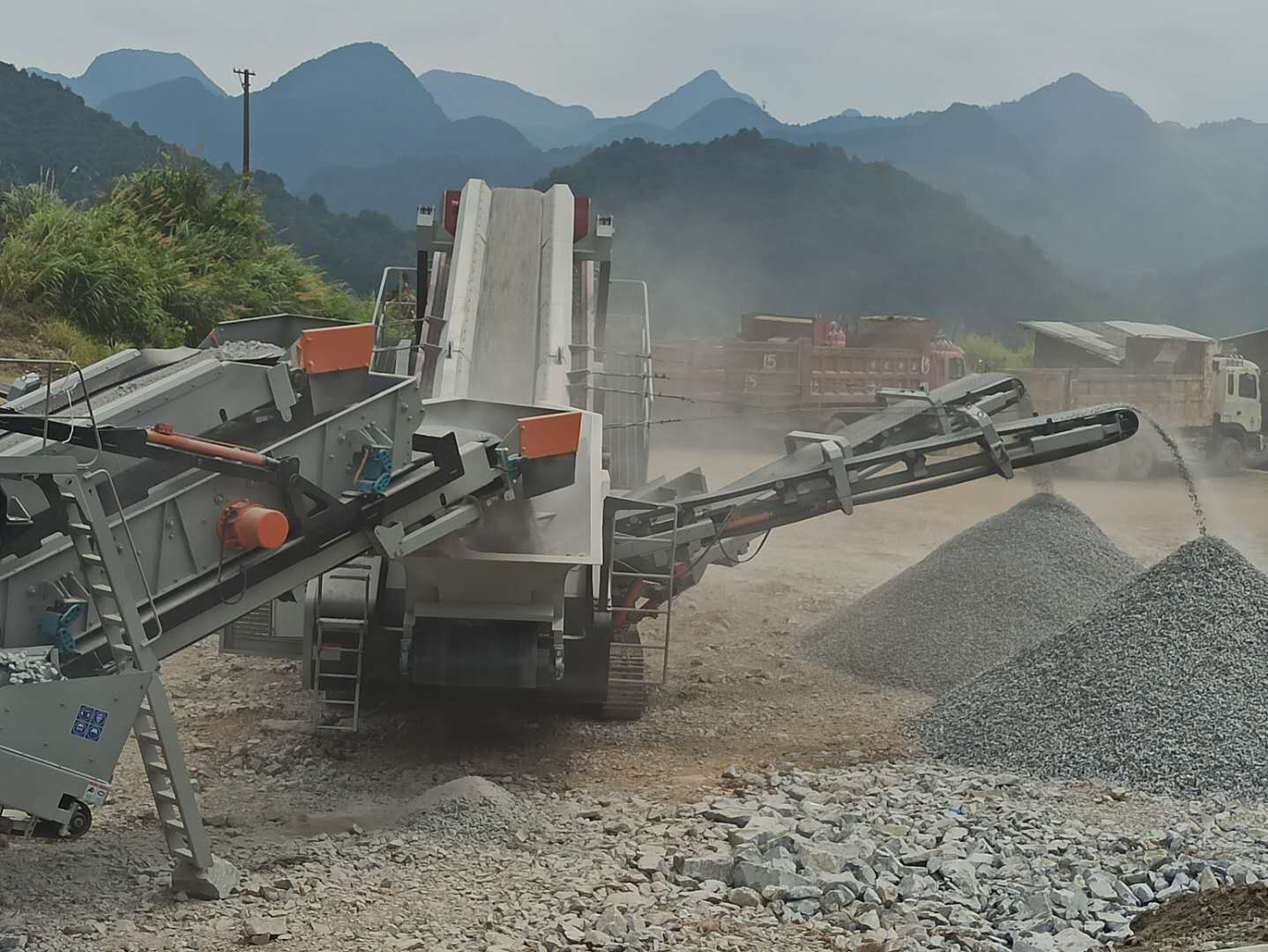移動(dòng)破碎站可直接進(jìn)入原料場(chǎng)地內(nèi)進(jìn)行工作,減少了原料的原料的運(yùn)輸環(huán)節(jié),從而節(jié)省了原料運(yùn)輸費(fèi)用