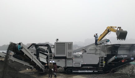 東蒙引進國外技術(shù)開發(fā)的新型履帶式移動破碎站,液壓驅(qū)動方式、自備動力、性能穩(wěn)定,集給料、破碎、傳送等工藝設(shè)備為一體